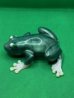 Cast in a deep, shimmering emerald resin, Emerald Guardian embodies protection, grounding, and renewal. It's smooth metallic sheen catches the light like polished stone, while its softly luminous feel give the impression of quiet watchfulness, This frog feels ancient-like a keeper of forest wisdom and prosperity.
